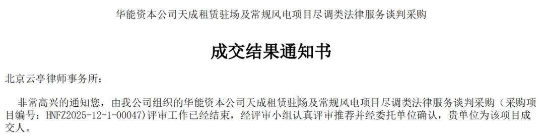 近日,北京云亭律师事务凭借在融资租赁领域丰富的法律服务经验和专业能力,成功中标华能天成融资租赁有限公司(以下简称“华能天成租赁公司”)驻场及常规风电项目尽调类法律服务项目。未来,云亭律所将致力于为华能天成租赁及广大金融租赁、融资租赁公司提供专业、高效、高质量的法律服务。
