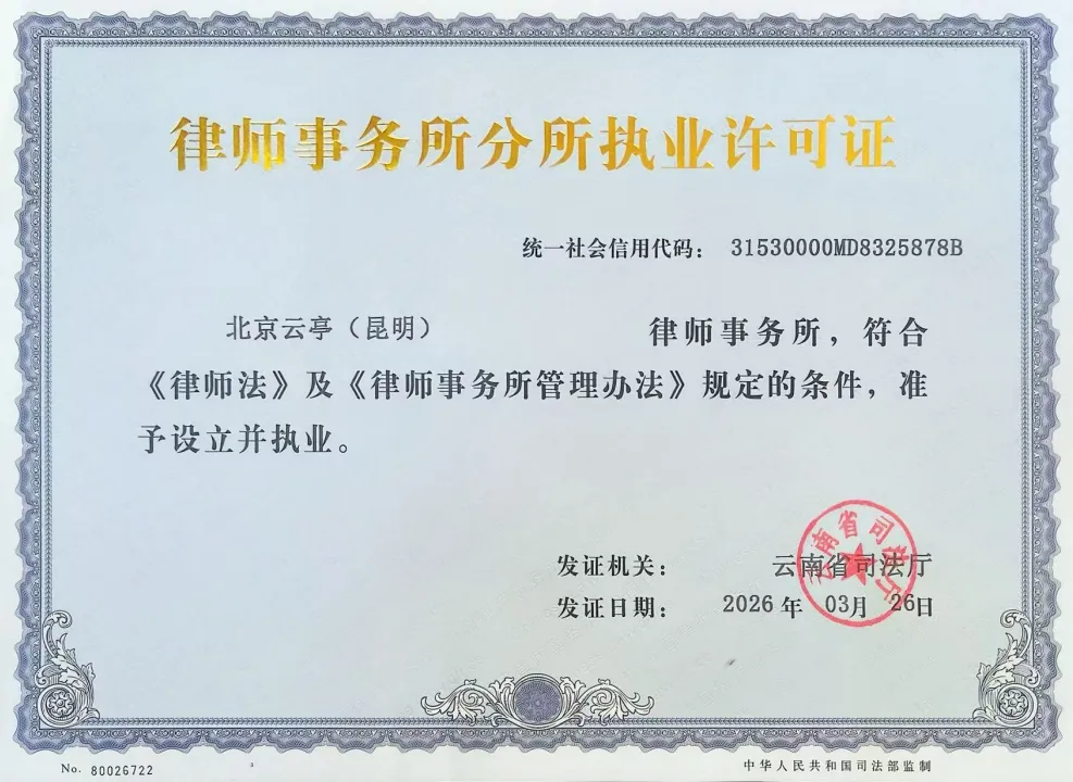 近日,经云南省司法厅审核批准,北京云亭(昆明)律师事务所(以下简称“云亭昆明分所”)正式成立,落户春城昆明。这是继武汉、乌鲁木齐、徐州、连云港、太原、石家庄、济南、萍乡、宁波等地分所设立后,云亭在全国战略布局中的又一关键落子。云亭昆明分所的成立,标志着云亭法律服务网络正式延伸至中国西南腹地,进一步完善了覆盖全国主要经济区域的服务体系,提升了对西南地区客户的响应能力与专业支持广度。